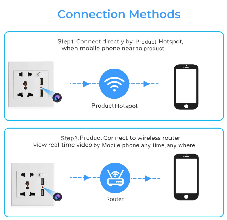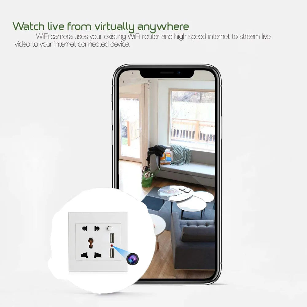 Covert Socket Spy Camera with Live Video Feed and Audio Recording