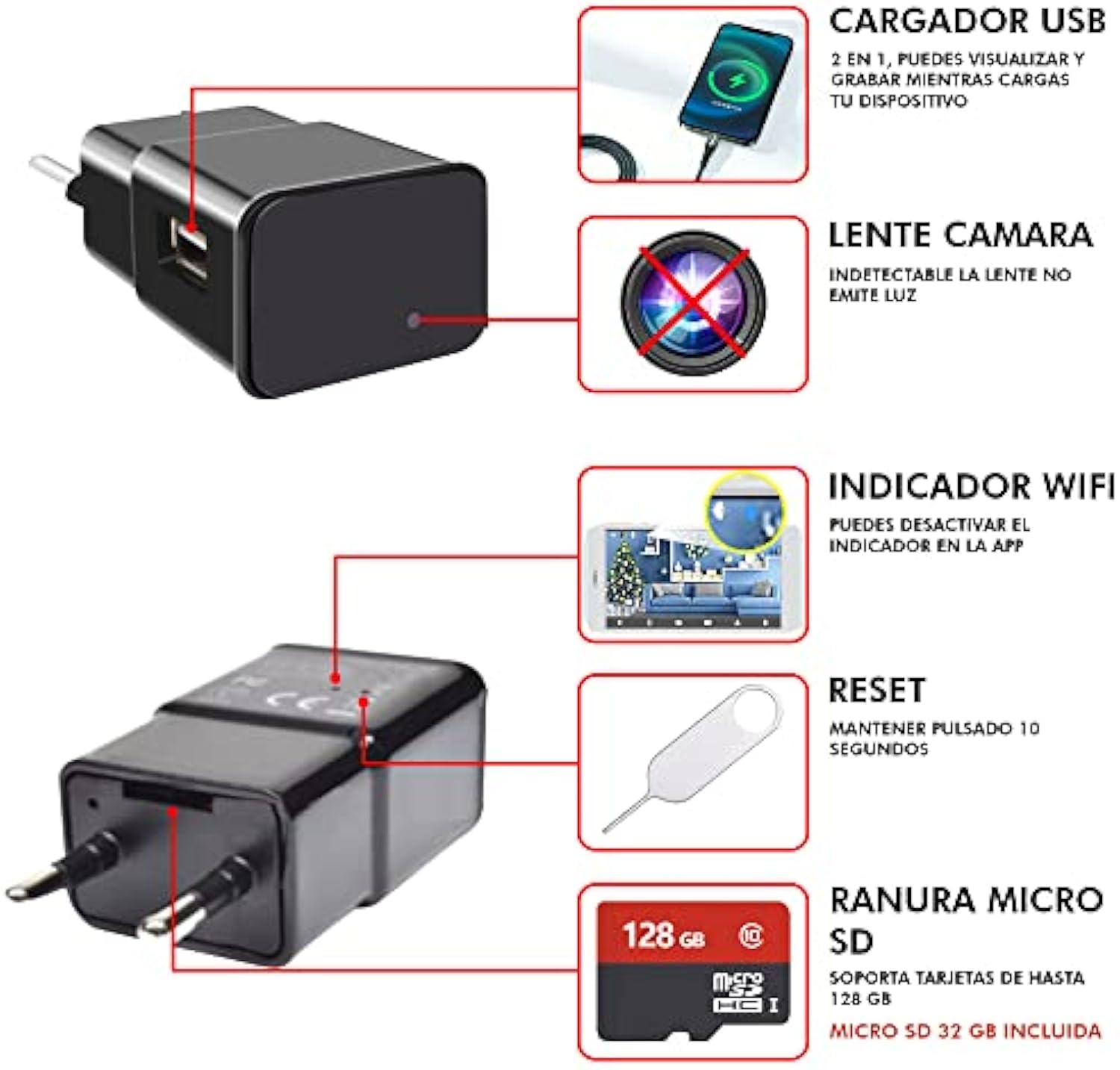 Covert WiFi Spy Camera Charger with 1080P HD Video