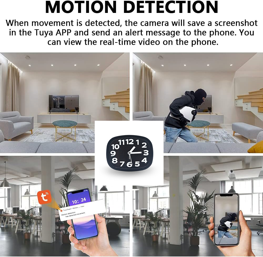 Customizable Stylish Tuya WiFi Clock Camera with HD 1080P and Night Vision