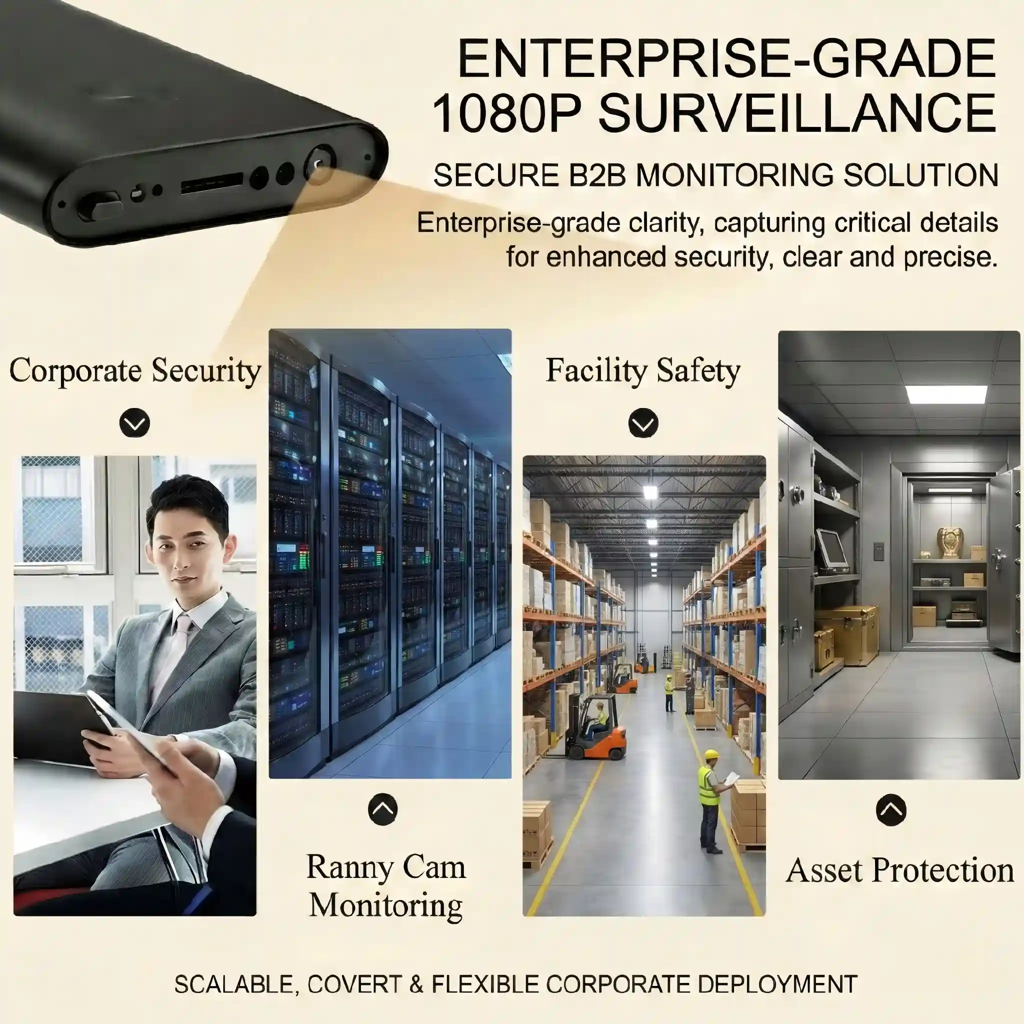 - Corporate Asset Protection: Monitor sensitive areas such as server rooms, supply closets, or executive offices to deter unauthorized access.
