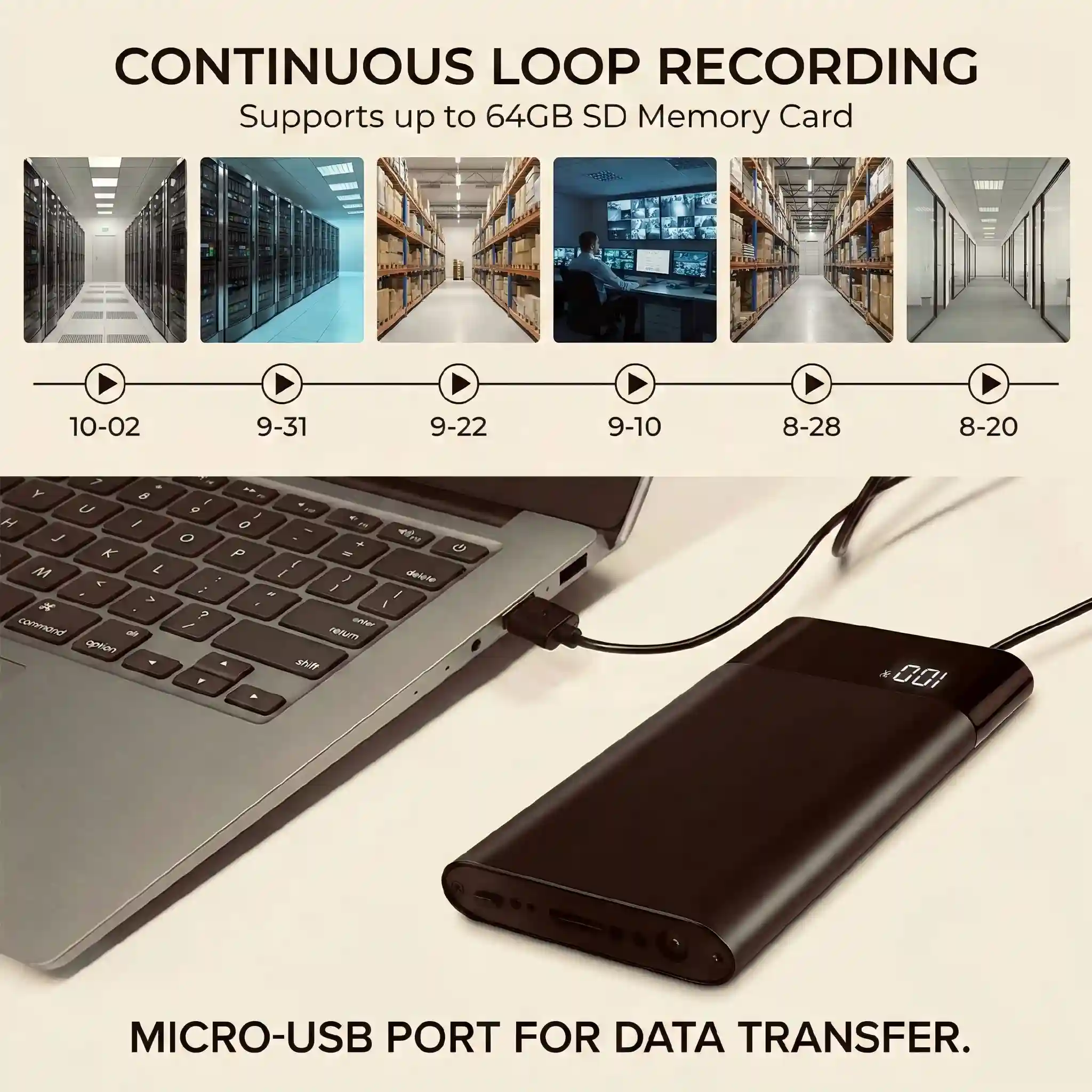 - Retail Loss Prevention: Use as a portable solution to monitor high-theft areas, cash handling points, or stockrooms without the need for permanent installation.
