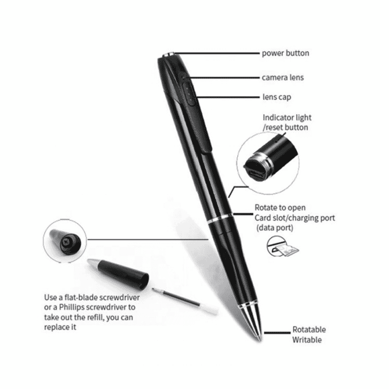 Small Ballpoint Pen Camera FULL HD 1080P With Built-in Microphone Security Camera for Home Office Video Pen Pinhole Camera