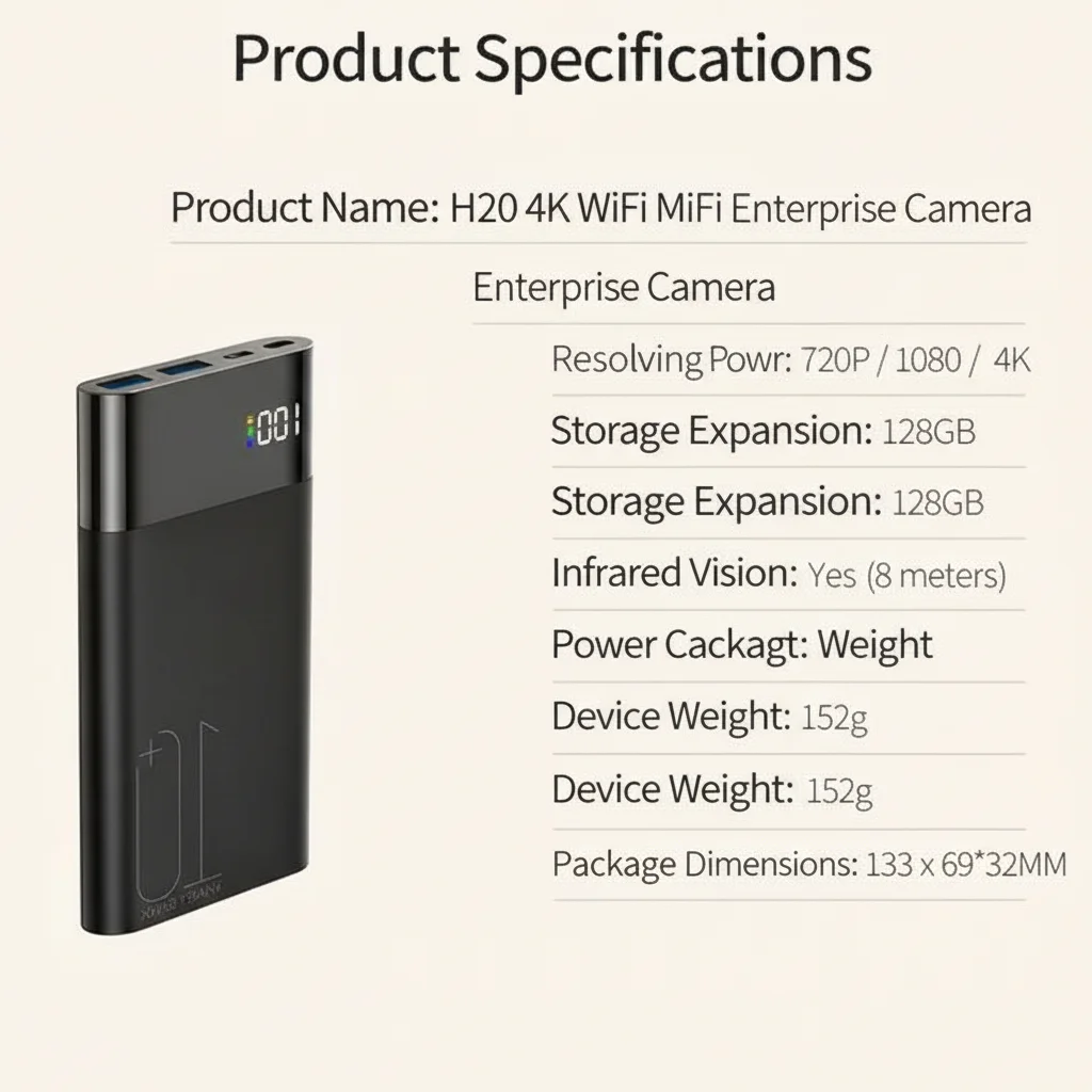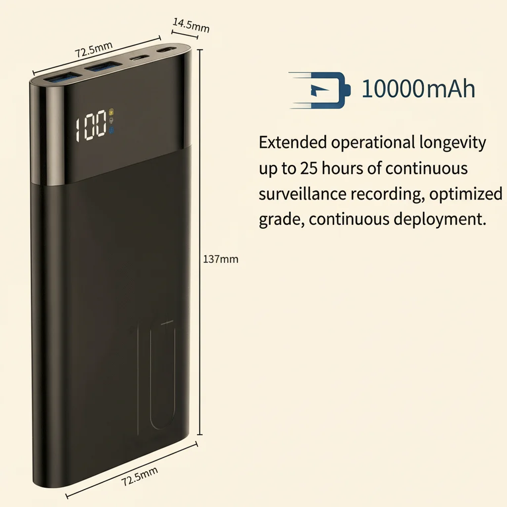 This device integrates a high-definition covert camera into a fully functional 10,000mAh power bank, offering a discreet and portable surveillance solution. Its design is indistinguishable from a standard portable charger, making it ideal for various professional monitoring applications while also serving as a practical tool for charging mobile devices.