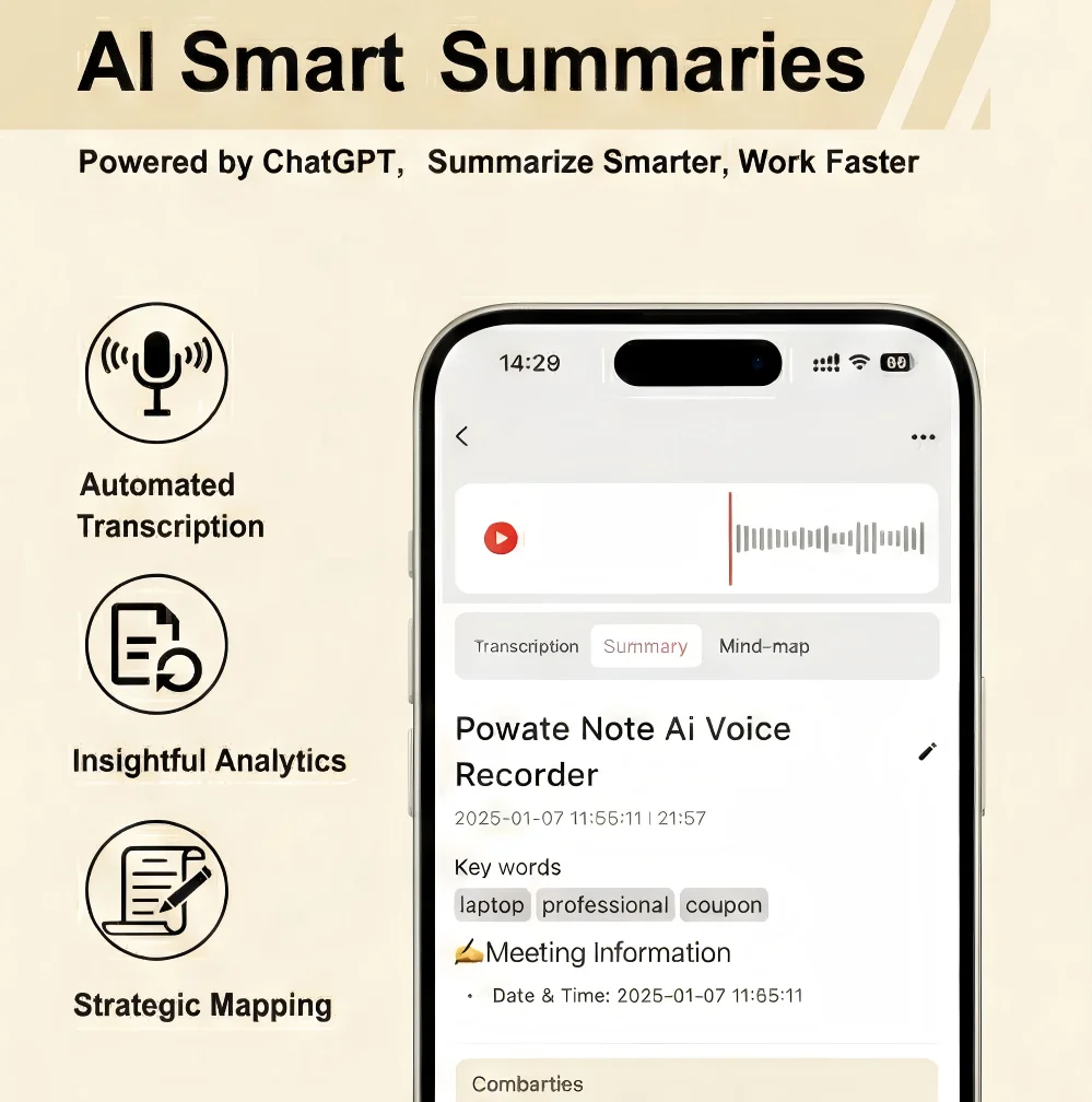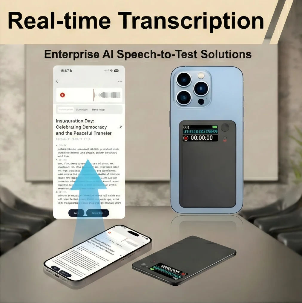 The device automates the process of converting audio recordings into text with up to 98% accuracy. This significantly reduces manual labor for creating meeting minutes, interview transcripts, and searchable documentation. The integrated AI can also generate concise summaries of long recordings, allowing teams to quickly understand key points and action items.