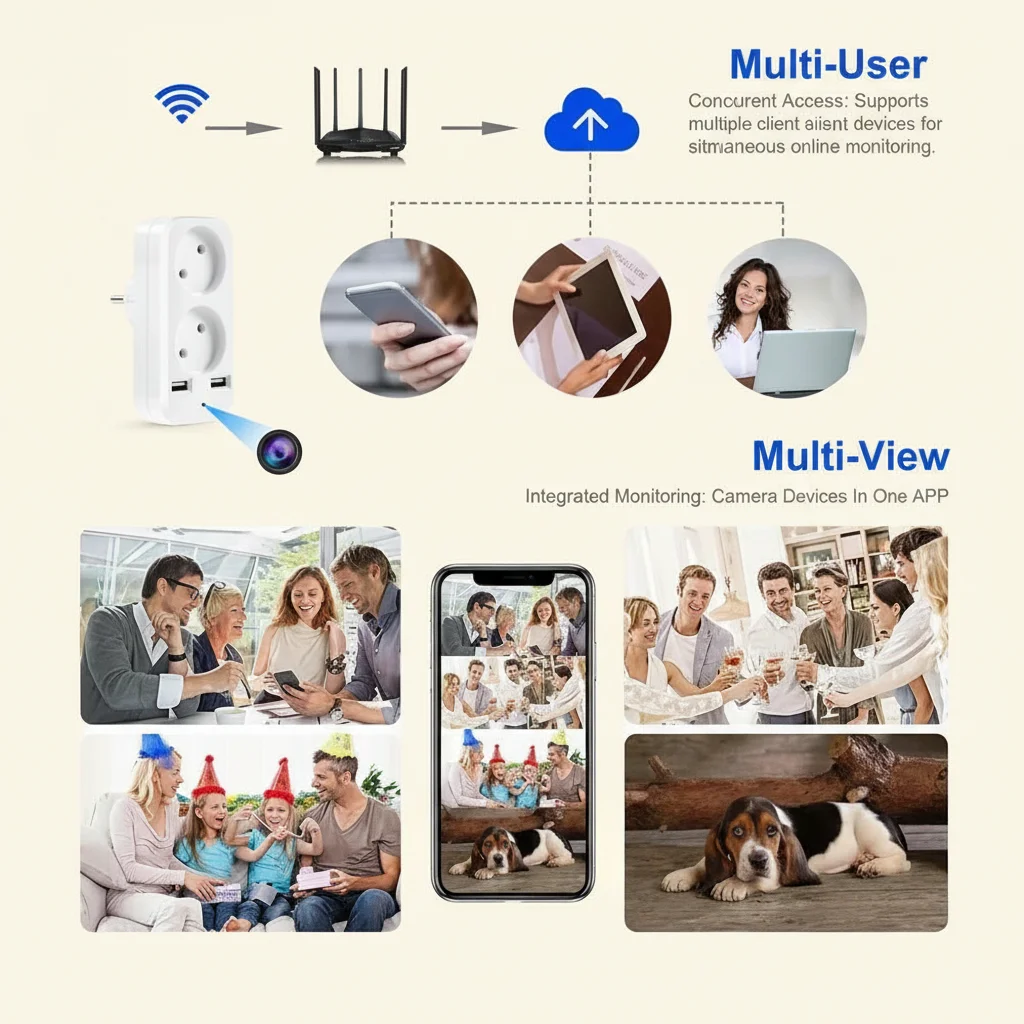 Ce dispositif intègre une caméra de surveillance haute performance dans une prise électrique standard européenne, offrant ainsi une solution de sécurité très demandée pour les marchés résidentiel et commercial. Sa conception à double usage garantit une intégration parfaite et un fonctionnement discret, ce qui en fait un complément idéal à toute gamme de produits de sécurité.