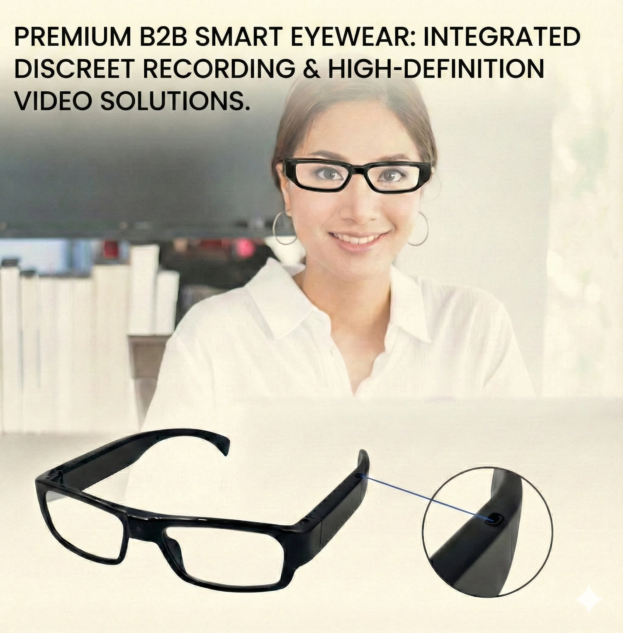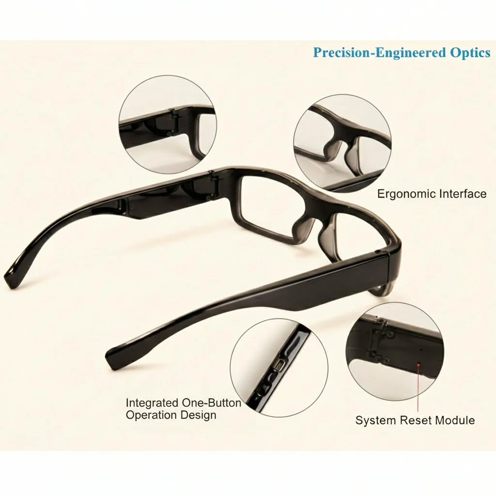 - Conception véritablement indétectable : L'objectif de la caméra est parfaitement intégré à la monture, la rendant indiscernable de lunettes de vue classiques. Cet atout est un argument de vente majeur pour les utilisateurs exigeant une discrétion maximale.