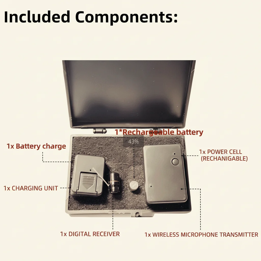 Progettato per la chiarezza, il sistema supporta una comunicazione bidirezionale senza interruzioni. Il microfono esterno vanta un'elevata sensibilità di 38 dB, in grado di catturare anche il parlato sussurrato con eccezionale chiarezza. L'auricolare è dotato di un ricevitore ad alta sensibilità e di un microaltoparlante stabile per offrire all'utente un audio nitido e privo di rumore.
