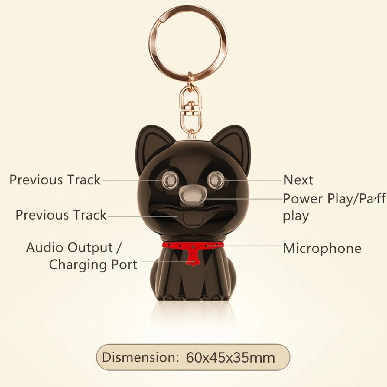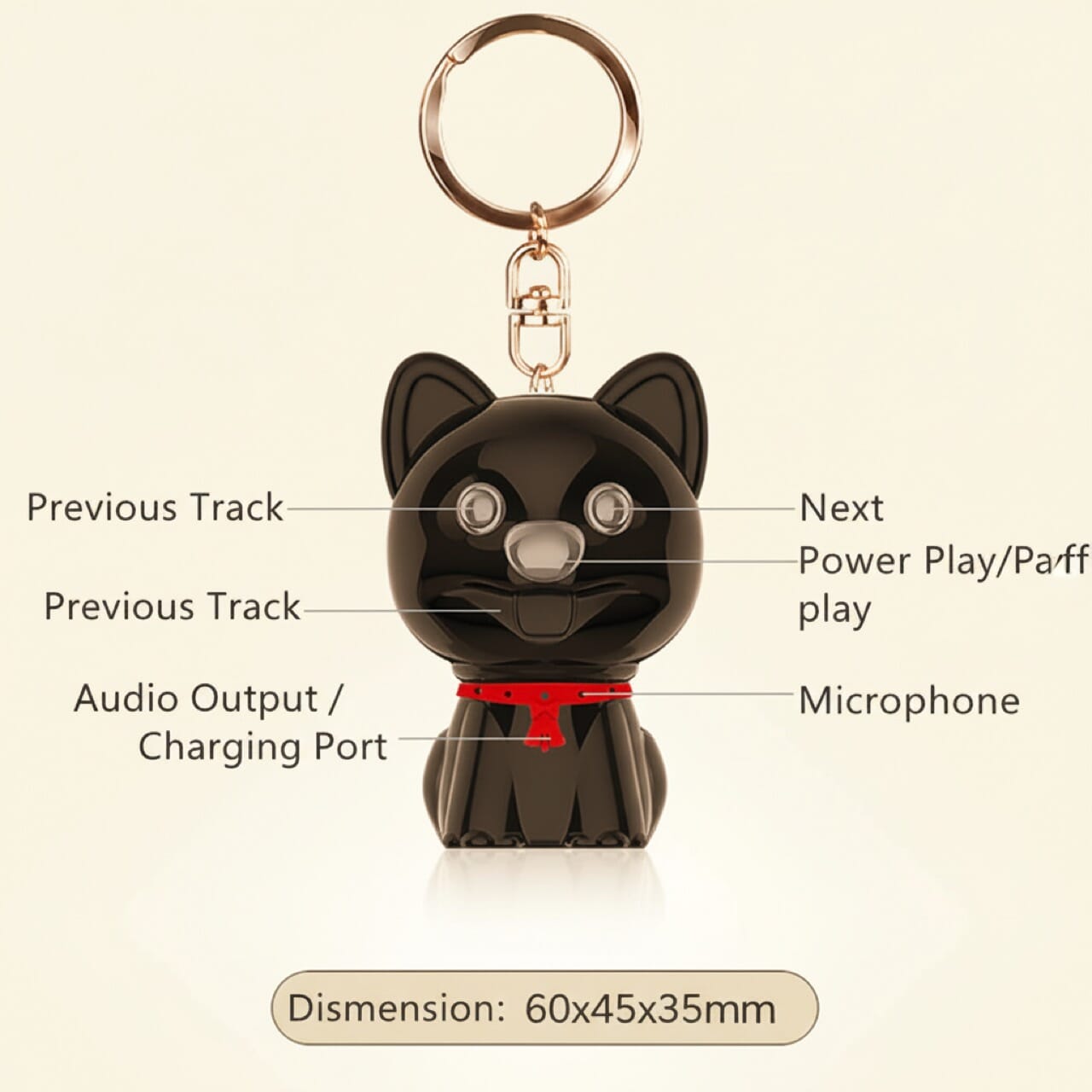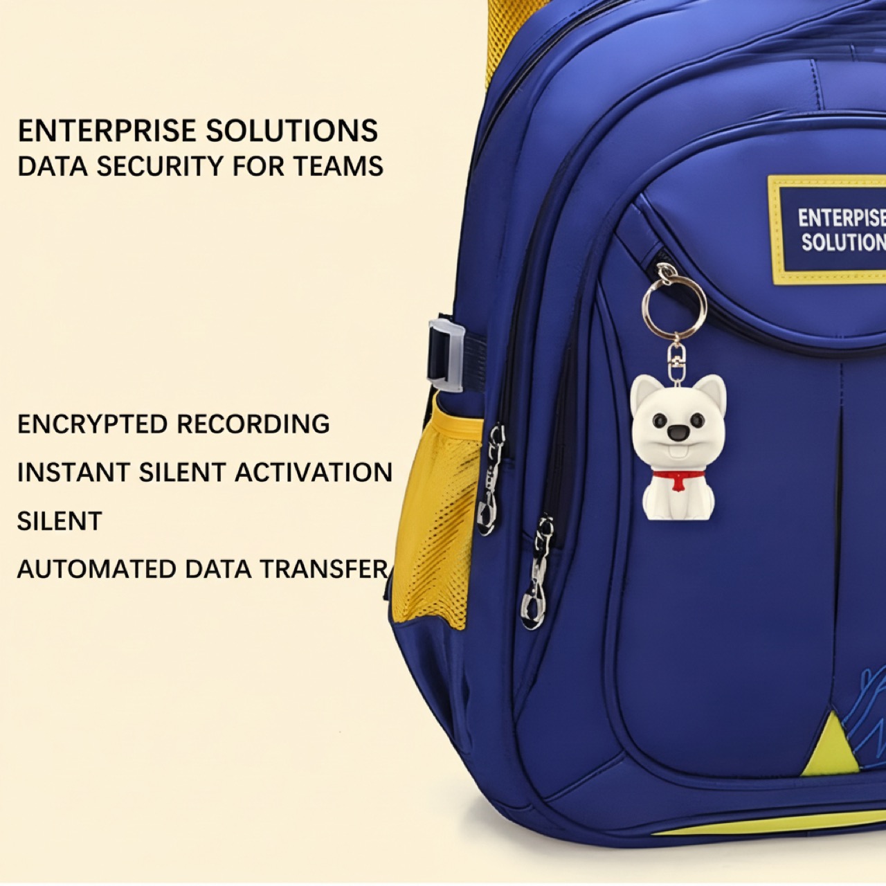 The device is designed as a common puppy-shaped keychain. This form factor ensures it remains unobtrusive in any environment, which is critical for covert audio surveillance or recording in sensitive situations. The durable silicone cap protects connectors and maintains the device’s subtle appearance.