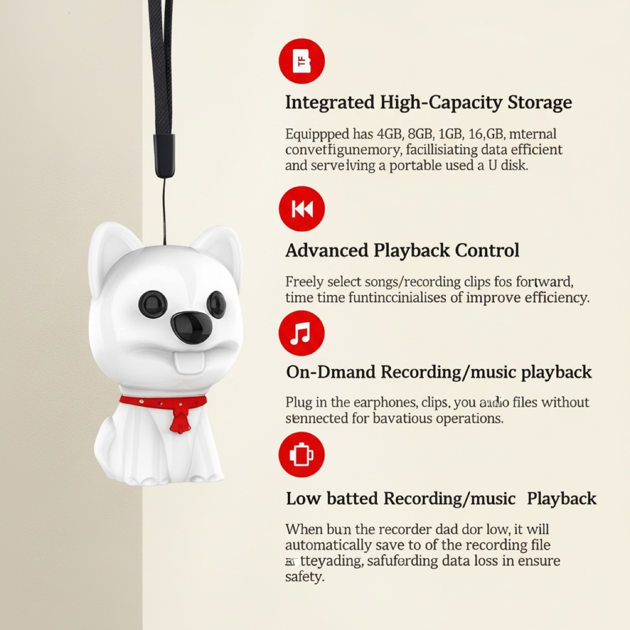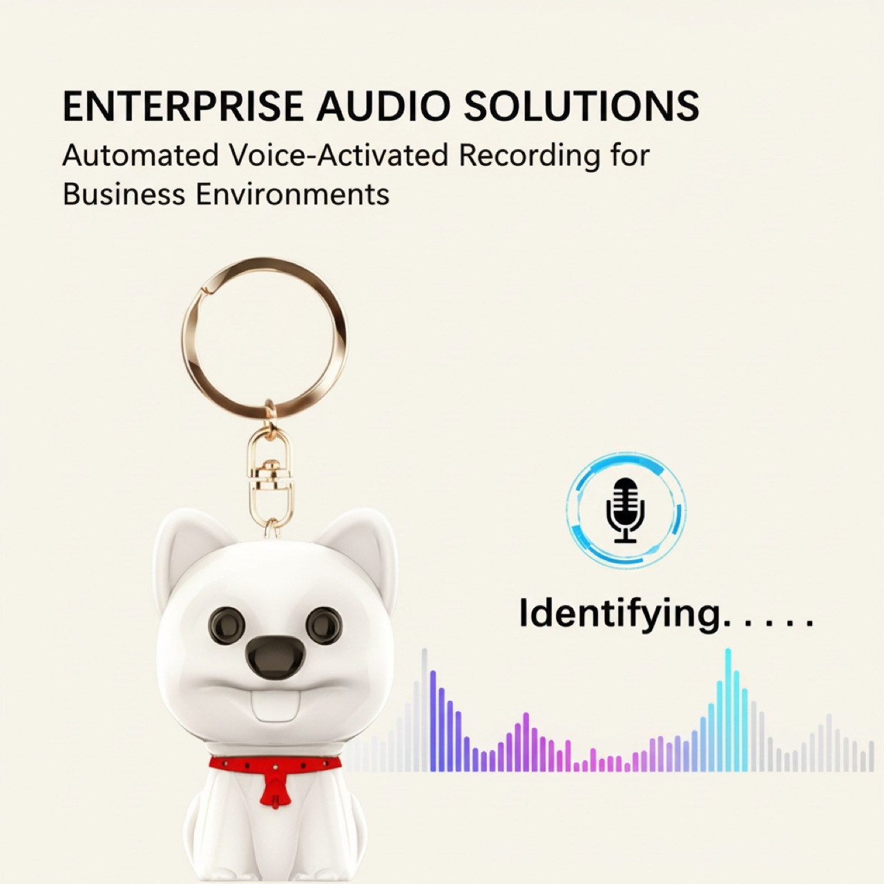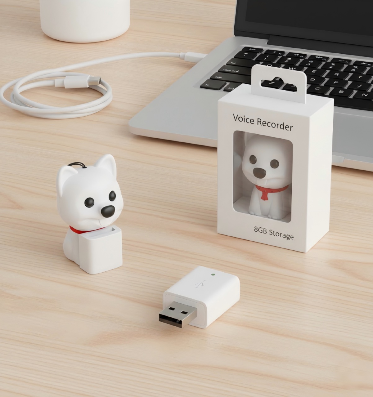 The device is designed as a common puppy-shaped keychain. This form factor ensures it remains unobtrusive in any environment, which is critical for covert audio surveillance or recording in sensitive situations. The durable silicone cap protects connectors and maintains the device’s subtle appearance.