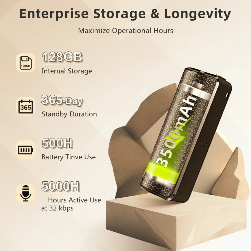 - Extended Recording Capacity: Provides up to 500 hours of continuous audio recording on a single charge, minimizing the need for frequent battery management.