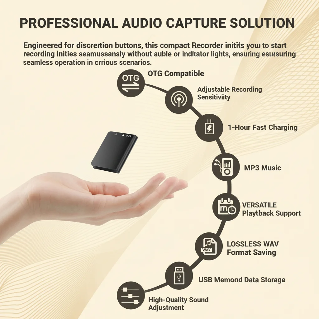 This ultra-compact digital voice recorder is engineered for reliability, discretion, and high performance, making it an ideal product for professional markets and retail distribution. Its proven sales record in competitive markets like Europe and Asia, backed by essential certifications, ensures a valuable addition to your product line.