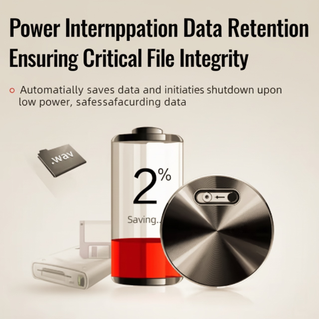 A high-capacity polymer lithium battery provides up to 20 hours of continuous recording time and a standby duration of up to 30 days. This extended performance ensures the device is ready for long meetings, multi-day events, or field operations without frequent recharging.