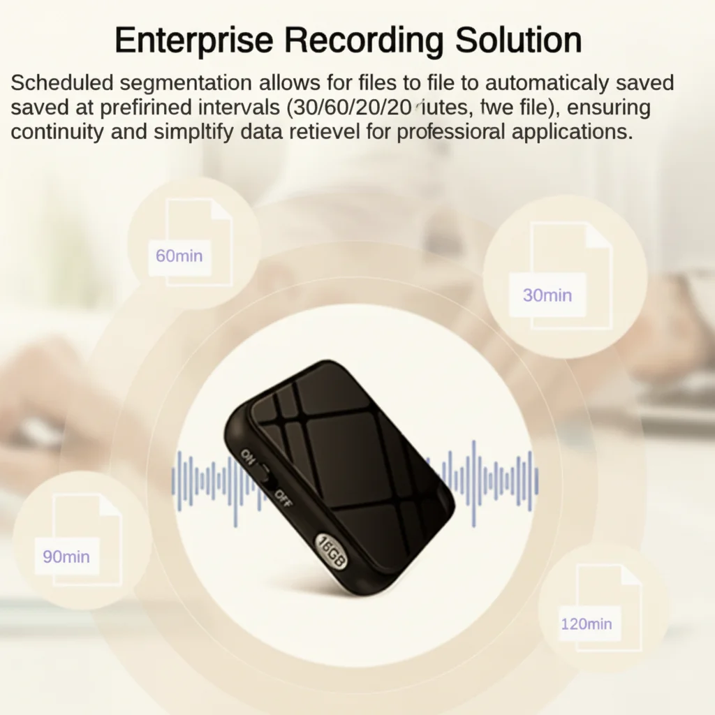 This ultra-compact digital voice recorder is engineered for reliability and extended use in professional environments. It combines a high-capacity battery with substantial internal storage, making it an ideal solution for resellers catering to clients in corporate, legal, and academic fields. Its discreet design and powerful features ensure it meets the demands of any recording scenario.