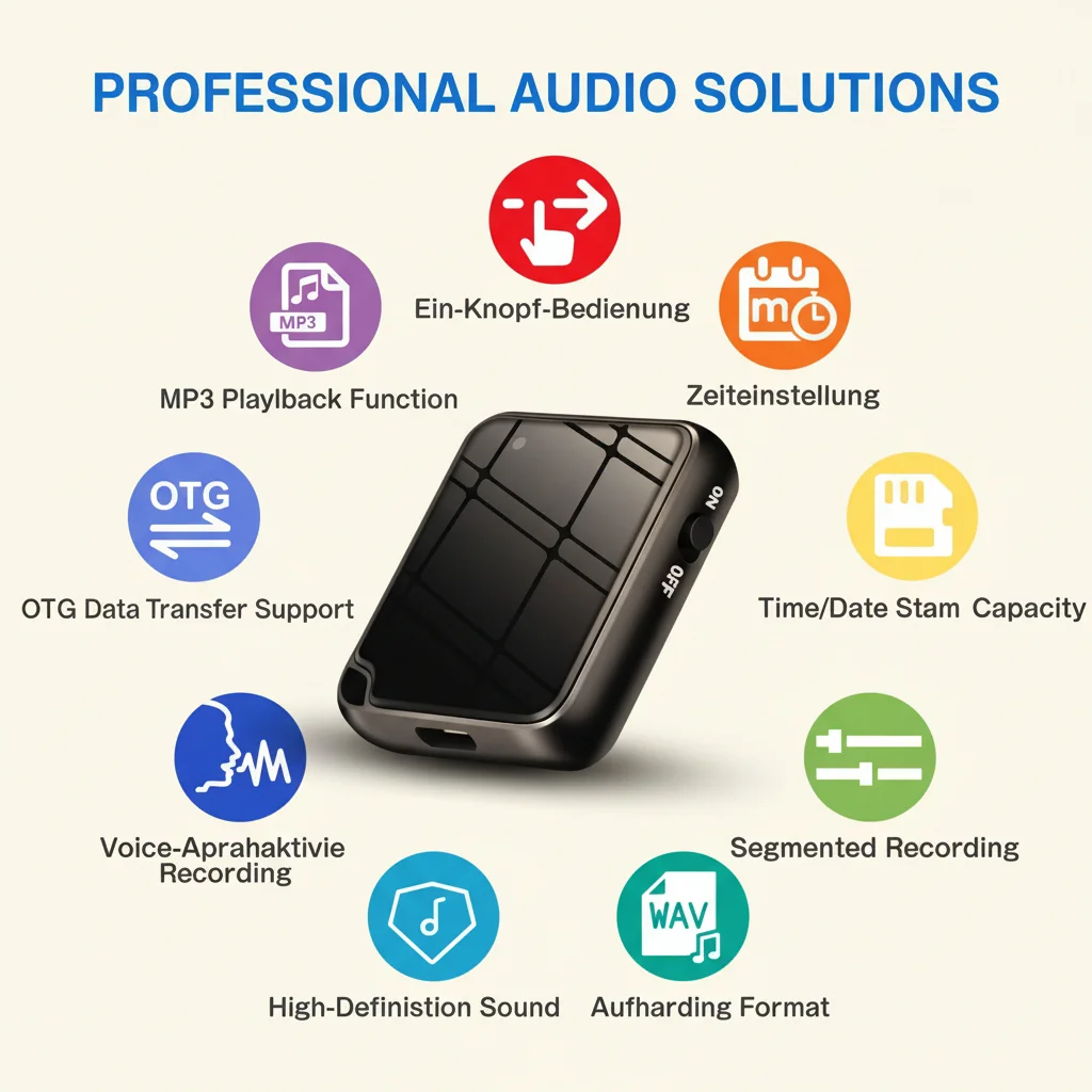 This device integrates a high-sensitivity microphone system with advanced noise reduction to deliver clear, intelligible audio recordings, even in challenging environments.