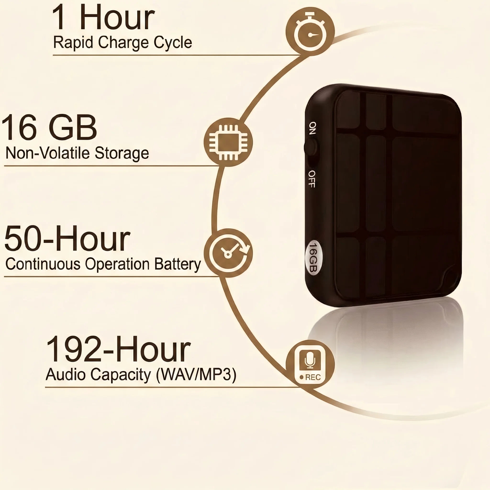 Designed for multi-day conferences, extensive interviews, or continuous monitoring, this device offers up to 50 hours of non-stop recording on a single charge. This industry-leading battery performance minimizes downtime and eliminates the need for frequent recharging, providing a dependable tool for critical tasks.
