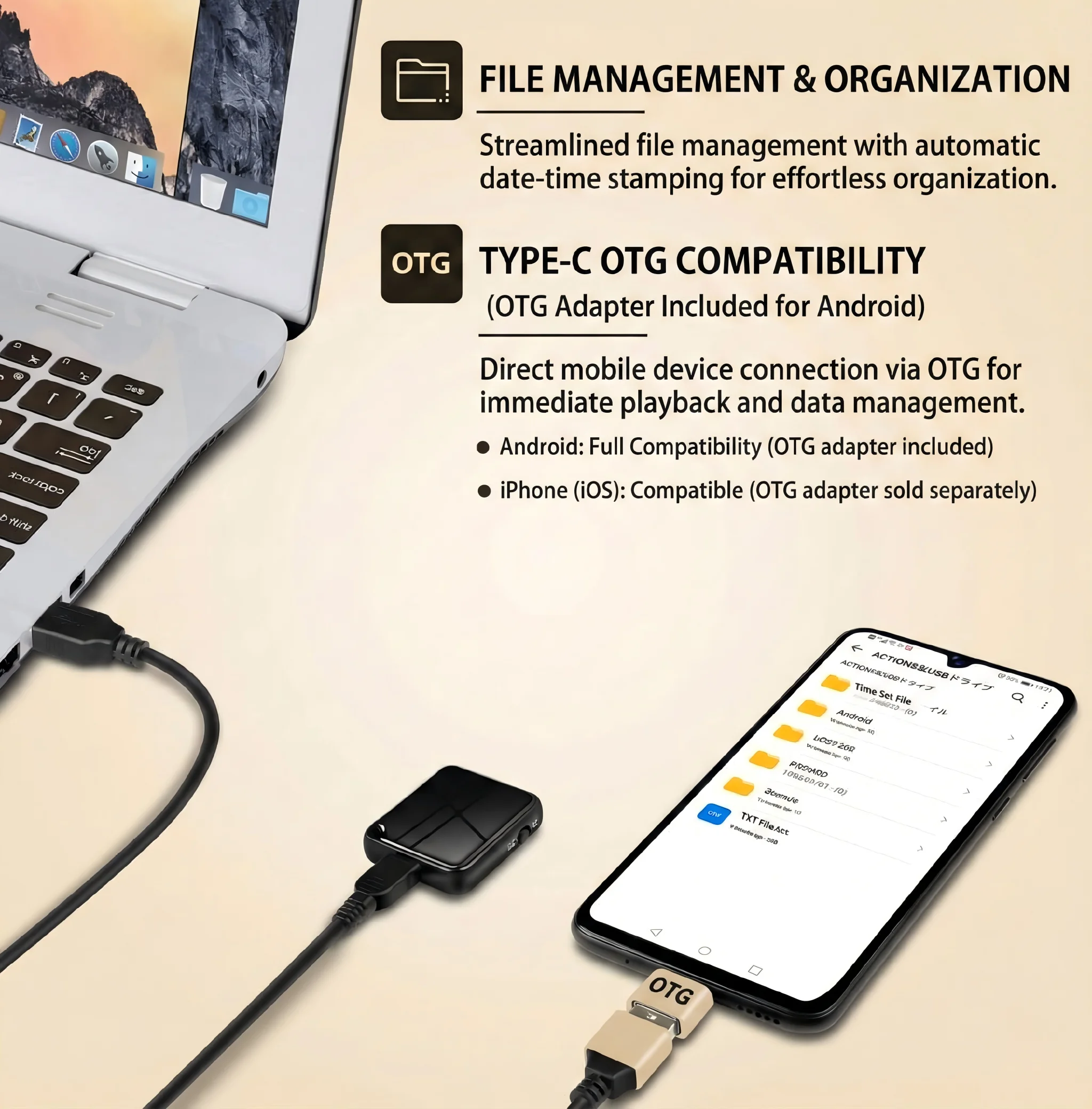 - OTG Mobile Connectivity: Enables direct connection to Android devices for on-the-go file playback, transfer, and management without requiring a computer.