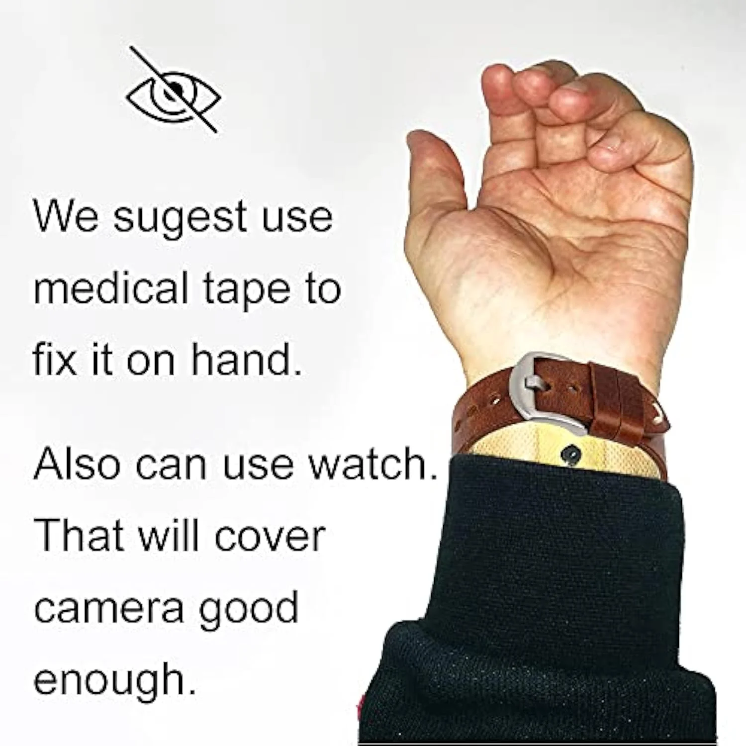 Button covers available for lens (DIY with glue/tape). Portable design fits under clothes.